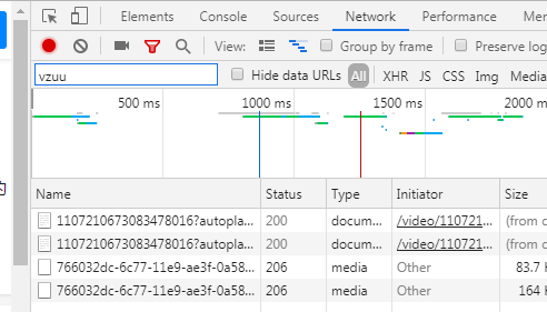 然后在方框中输入vzuu,vzuu为知乎视频网站的主机名,下方就会过滤出链接来。